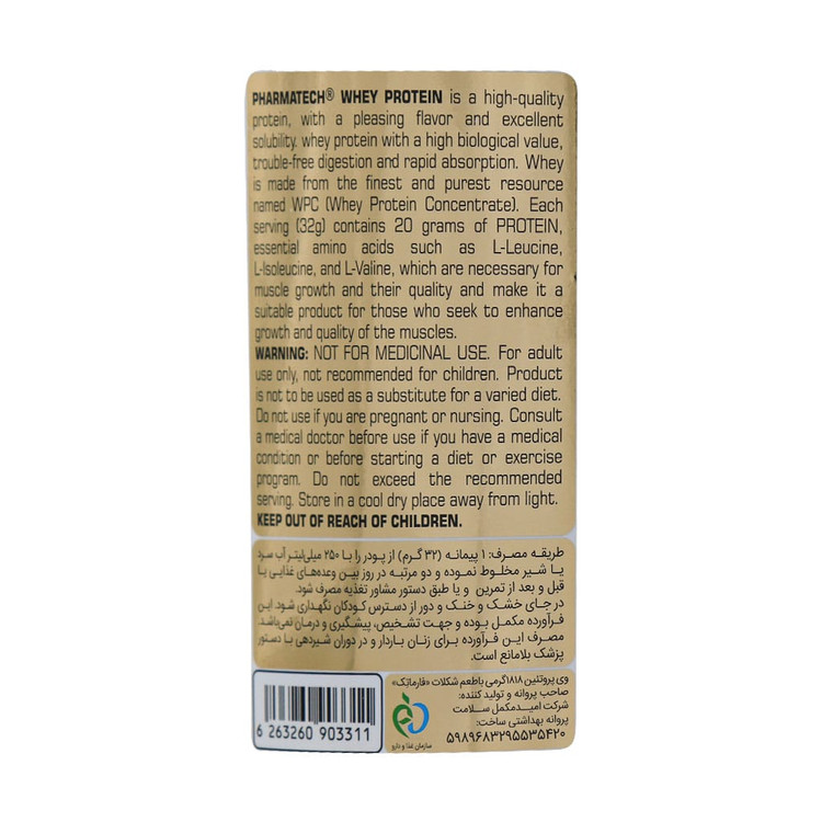 مکمل وی پروتئین فارماتک دارای پروتئین وی کنسـتانتره و ایزوله شده است که شامل اسید آمینه های شاخه دار (BCAA’s) و گلوتامین می باشد که تأثیر بسزایی در تحریک هورمون رشد و سنتز پروتئین در عضلات دارد . این امر به افزایش حجم خالص توده عضلانی کمک نموده و همچنین باعث تقویت سیستم ایمنی بدن نیز می شود . پروتئین وی محصولی است که از تبدیل شیر به پنیر فرآوری میشود و به آب پنیر نیز معروف است .کیفیت یک پروتئـین از طـریق چـندین روش محـاسبه میشود که یکی از روشهای رایج ارزش بیولوژیکی یا BV میباشد . ارزش بیولوژیکی معیاری برای سودمندی مواد غذایی و چگونگی جذب و استفاده آن توسط بدن میباشد و پروتئین وی یکی از مکمل های غذایی با ارزش بیولوژیکی بسیار بالا میباشد .
