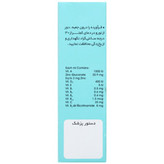مقدار مصرف بر اساس سن و جنس تعیین می گردد. مقدار مصرف معمول فراورده روزانه یک میلی لیتر است. پس از باز کردن درب قوطی و قرار دادن قطره چکان بر روی آن فرآورده به مدت یک ماه قابل استفاده می باشد.ترکیبات: