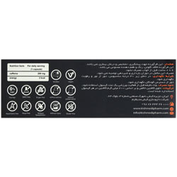 حاوی 200 میلی گرم کافئین خالص فاقد گلوتن، شکر، سویا، رنگ و طعم دهنده مصنوعی