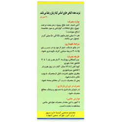 - منع مصرف و احتیاط های لازم: در صورت حساسیت، مصرف دارو قطع شود. مصرف در دوران بارداری: در دوران بارداری با دستور پزشک مصرف شود. عوارض جانبی: تاکنون این مقدار مصرف عوارض جانبی خاصی گزارش نشده است.
