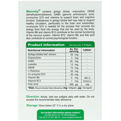 - ممولیک، حاوی عصاره برگ جینکوبیلوبا، وینپوستین، DMAE، گابا، لوتئولین، تئانین، کوآنزیم کیوتن (Q10) و ویتامینهای B9 ،B6 و B12