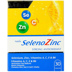 مشخصات فراورده: مکمل نوتراکس سلنوزینک حاوی ترکیبی از مواد مغذی، آنتی اکسیدان، ویتامین ها و مواد معدنی می باشد که به منظور کمک به ایجاد محافظت در برابر رادیکال های آزاد و کمک به تقویت سیستم ایمنی بدن تهیه و تولید شده است. این فرآورده همچنین به عملکرد طبیعی غدد تیروئید و حفظ سلامت قلب و عروق کمک شایانی می نماید. سلنیوم (Selenium) به عنوان یک آنتی اکسیدان قوی، نقش حیاتی در بهبود عملکرد سیستم ایمنی بدن با پیشگیری از تشکیل رادیکال های آزاد ایفا می نماید. همچنین در متابولیسم هورمون های غده تیروئید، نقش مهمی ایفا نموده و بهبود عملکرد آن کمک می نماید. سلنیوم همچنین به کاهش سطح کلسترول خون و کاهش علائم بیماری های قلبی و عروقی کمک شایانی می نماید. روی(Zinc) یکی از ضروری ترین مواد معدنی در بدن می باشد که به طور عمده در ماهیچه ها ذخیره گردیده و در گلبول های خونی سفید و قرمز، شبکیه چشم، استخوان ها، پوست، کلیه ها، کبد و پانکراس یافت می شود. از مهمترین اعمال حیاتی این عنصر برای بدن، بهبود و تقویت سیستم ایمنی بدن از طریق افزایش تولید گلبول های سفید خون که نقش اساسی در افزایش قدرت دفاعی بدن را دارند، می باشد. اثربخشی عنصر روی در کاهش علائم سرماخوردگی و آنفولانزا به اثبات رسیده است. روی همچنین در کمک به رفع آکنه ولگاریس و سایر مشکلات پوستی نقش موثر داشته و به حفظ سلامت و شادابی پوست، مو و ناخن کمک شایانی می نماید. ویتامین های سی،ای (Vitamins E & C ) از قوی ترین آنتی اکسیدان های موجود می باشند که در مقابله با اکسایش سلولی، ترمیم و بازسازی بافت ها، محافظت از ریه ها در برابر مشکلات تنفسی و همچنین کمک به کاهش علائم بیماری های قلبی تاثیر بسزایی دارد. این ویتامین ها با کمک به تقویت سیستم ایمنی بدن، سبب کاهش مدت علائم سرماخوردگی در افرادی که دچار ضعف سیستم ایمنی هستند، می شوند. ویتامین آ (Vitamin A) به عنوان منبع غنی از آنتی اکسیدان با خنثی نمودن اثرات مخرب و آسیب های ناشی از رادیکال های آزاد، سبب کمک به تقویت سیستم ایمنی بدن، حفظ سلامت چشم ها و سلامت سیستم قلبی و عروقی می گردد. ویتامین ب6 (Vitamin B6) کمک به افزایش جریان خون مویرگی سبب اکسیژن رسانی به فولیکول های مو گردیده و در نتیجه به افزایش رشد مو و احیای ساختار فولیکول های مو کمک شایانی می نماید.