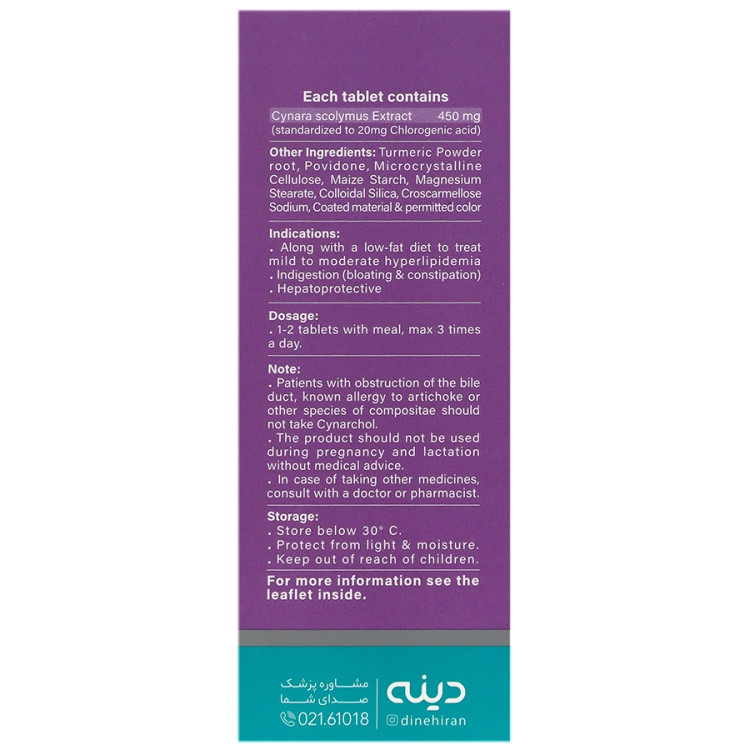 - قرص سینارکول، حاوی پودر ریشه زردچوبه و عصاره کنگر فرنگی
