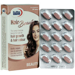 - مکمل تغذیه ای حاوی ویتامینها، مواد معدنی، اسیدهای آمینه، پارا آمینو بنزوئیک اسید و عصاره دم اسب جهت رشد و تثبیت رنگ مو