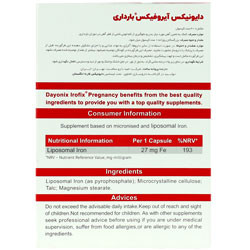 هر کپسول حاوی آهن پیروفسفات لیپوزومال معادل 27 میلی گرم آهن