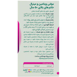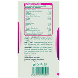 حاوی ویتامین ها و مواد معدنی مغذی مورد نیاز بدن خانمهای بالای 50 سال حاوی پلت های آهسته رهش