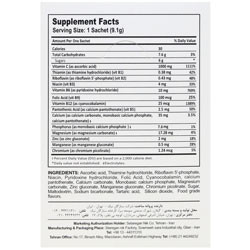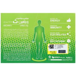 ویتامین C این محصول حاوی ترکیبی از ویتامین C و ویتامین B، روی، منگنز، کلسیم، منیزیم، سدیم، کروم و فسفر میباشد که به تامین ویتامین C و بهبود عملکرد سیستم ایمنی کمک می کند.