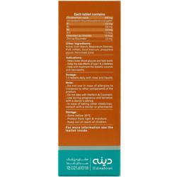 - هر قرص حاوی پودر دارچین، ویتامین B1، ویتامین B2، ویتامین B6، ویتامین B12، کروم و زینک