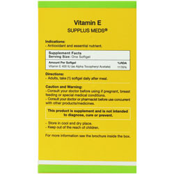 ویتامین ای 400 ساپلاس مدز: ویتامین E یکی از ویتامین های محلول در چربی است که به عنوان یک آنتی اکسیدان قوی نیز شناخته می شود. آنتی اکسیدان ها از سلول های بدن در برابر اثرات مخرب رادیکال های آزاد، که معمولا در اثر سوخت و ساز درون سلولی، آلودگی هوا و اشعه ماوراءبنفش به وجود می آیند، محافظت می کنند. ?ویتامین E از ابتلا به بیماری های قلبی-عروقی و سرطان پیشگیری کرده و به تقویت و افزایش انعطاف پذیری دیواره رگ های قلبی کمک می کند. مصرف این ویتامین سبب افزایش عملکرد سیستم ایمنی و افزایش استقامت فیزیکی و قدرت عضلانی می شود. یکی از اثرات مهم ?ویتامین E حفظ سلامت پوست و پیشگیری از بروز چین و چروک است.