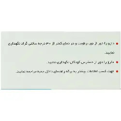 دارو را دور از نور، رطوبت و در دمای کمتر از 30 درجه سانتی گراد نگهداری نمایید. دارو را دور از دسترس کودکان نگهداری نمایید.