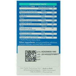 - شامل ویتامین سی، ویتامین دی، تیامین، ریبوفلاوین، نیاسین، ویتامین ب6، فولات، ویتامین ب12، بیوتین، پانتوتنیک اسید، آهن، زینک، سلنیوم و مس