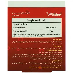 منع مصرف: در صورت ابتلا به هموکروماتوزیس، هموسیدروزیس، آنمیهمولیتیک و یا سابقه حساسیت به ترکیبات به کار رفته در این فرآورده از مصرف آن خودداری شود. - عوارض جانبی: این فرآورده فاقد عوارض گوارشی شایع آهن و سیاهی دندان است. - تداخل دارویی: برخلاف سایر فرآورده های آهن، به دلیل فرم لیپوزومال آن این فرآورده تداخلی با سایر داروها، مکملها و مواد غذایی ندارد و نیازی به رعایت فاصله زمانی در مصرف آن نیست. آهن به فرم لیپوزومال تداخل کمتری با غذا داشته و میتوان آن را با فرآوردههای لبنی مصرف کرد. - موارد احتیاط و هشدار: افراد با میزان طبیعی آهن نباید مکمل آهن را به صورت دائم استفاده کنند. نوزادان نارسی که سطح ویتامین E پایینی دارند قبل از مصرف با پزشک معالج خود مشورت کنند. برای اطمینان از برداشتن مقدار مشخص و صحیح فرآورده، از قطره چکان مدرج داخل جعبه استفاده نمایید. مصرف اتفاقی و بیش از حد آهن برای کودکان ایجاد مسمومیت میکند در نتیجه این فرآورده باید دور از دسترس کودکان نگهداری گردد.