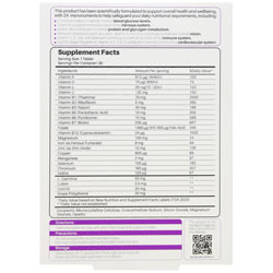 - حاوی کروم، ویتامین های گروه B، ویتامین E، سلنیوم، منیزیم، ویتامین D، کوکیوتن (Co Q10)، لوتئین و گریپ پلی فنول بدون شکر بدون گلوتن بدون لاکتوز بدون مخمر بدون نگهدارنده