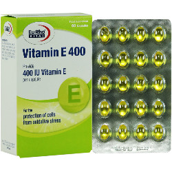 کپسول ویتامین ای 400 یوروویتال تامین کننده 265 میلی گرم ویتامین E در هر کپسول می باشد و میتواند در حفظ سلامت عمومی و پیشگیری از کمبود ویتامین E یا در کمک به درمان کمبود ویتامین E موثر باشد.این مکمل تحت لیسانس شرکت Euro OTC Pharma GmbH کشور آلمان، دارنده پروانه ساخت شرکت حکیمان طب کار و در داروسازی مینو در ایران تولید و بسته بندی شده است.