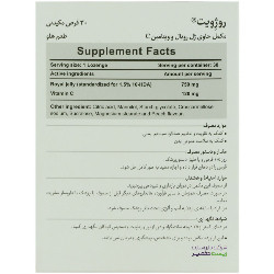 با طعم هلو حاوی ژل رویال و ویتامین C مواد موثره: 750 میلی گرم ژل رویال و 120 میلی گرم ویتامین C