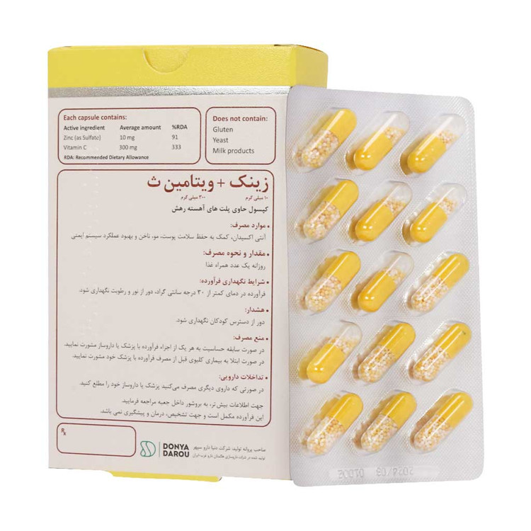 حاوی زینک 10 میلی گرم و ویتامین سی 300 میلی گرم