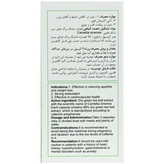 موارد منع مصرف: توصیه می شود از مصرف این دارو در دوران بارداری و شیردهی به دلیل مقادیر کم کافئین موجود در آن اجتناب شود. - موارد احتیاط: در بیماران با سابقه ناراحتیهای قلبی، کلیوی، پرکاری تیروئید، گوارشی و همچنین اضطراب با احتیاط مصرف گردد. - عوارض جانبی و هشدارها: مصرف فرآورده به دلیل کلروژنیک اسید و تانن موجود در آن، غالباً باعث بروز عوارض جانبی در اشخاص دارای معده حساس می گردد. مصرف دراز مدت و بیش از اندازه دارو، منجر به برخی از علائم غیر اختصاصی مانند بی حالی، کج خلقی، بی خوابی، تپش قلب، سرگیجه، استفراغ، اسهال، کم اشتهایی و سردرد می شود. - تداخلات دارویی: از مصرف همزمان چای سبز با داروهای ضد انعقاد خودداری گردد. این کپسول نباید با داروهای حاوی آهن مصرف گردد.