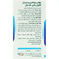 مورد نیاز بدن آقایان بالای 50 سال حاوی ویتامین ها و مواد معدنی مغذی حاوی پلت های آهسته رهش