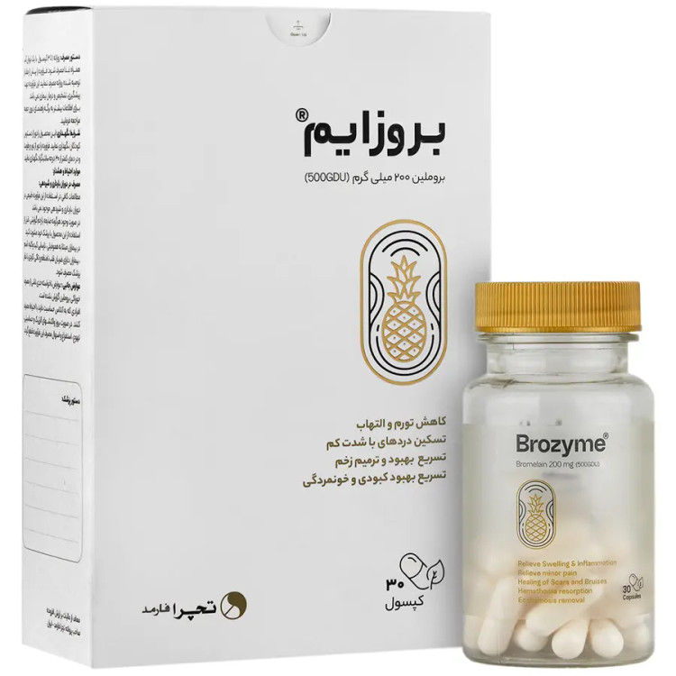 این فرآورده جهت پیشگیری، تشخیص و درمان بیماری نمی باشد. - مصرف در دوران بارداری و شیردهی: مطالعات کافی در استفاده از این داروی گیاهی در دوران بارداری و شیردهی موجود نمی باشد. در صورت وجود هرگونه ضایعه یا زخم گوارشی، قبل از استفاده از این محصول با پزشک خود مشورت کنید. در بیماران مبتلا به هموفیلی، نارسایی کبد و کلیه، آسم، بیماران دارای ضربان قلب نامنظم و تاکی کاردی با نظر پزشک مصرف شود. - عوارض جانبی: عوارض ناخواسته جدی ناشی از مصرف خوراکی بروملین گزارش نشده است. افرادی که به آناناس حساسیت دارند با احتیاط مصرف کنند. در صورت بروز واکنش های آلرژیک و حساسیتی، تهوع، استفراغ و اسهال مصرف این فرآورده قطع گردد. - تداخلات دارویی: در صورت مصرف داروهای ضد انعقاد، ضد التهاب یا آنتی بیوتیک ها قبل از مصرف با پزشک خود مشورت نمایید. با داروهای رقیق کننده خون، ضد انعقادها و ترمبولیتیک ها مصرف نشود. بروملین زمان لخته شدن خون را کند می کند، بنابراین اگر از داروهای رقیق کننده خون استفاده می کنید از مصرف آن اجتناب نمایید. جذب آنتی بیوتیک هایی مانند تتراسایکلین و داکسی سایکلین، آموکسی سیلین و پنی سیلین را بالا می برد. بروملین ممکن است اثر داروهای آرام بخش را تقویت کند، از جمله: داروهای ضد صرع، مانند فنی توئین (دیلانتین) و اسید والپروئیک باربیتورات ها بنزودیازپین ها، مانند آلپرازولام و دیازپام داروهایی برای درمان بی خوابی، مانند زولپیدم، زالپلون داروهای ضد افسردگی سه حلقه ای، مانند آمی تریپتیلین