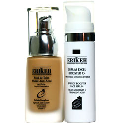 این پکیج ویژه شامل کرم پودر مخصوص پوست های چرب اریکه و سرم ضد چروک و شفاف کننده اریکه است . ویژگی های کرم پودر اریکه : - این محصول مخصوص پوست های چرب و اکنه دار است . در صورت تمایل به استفاده در انواع دیگر پوست ها ، باید از یک مرطوب کننده زیر این محصول استفاده شود . - آنتی باکتریال و کنترل کننده ترشح چربی - مرطوب کننده - ضد التهاب و تسکین بخش - حاوی فیلتر ضد آفتاب ویژگی های سرم ضد چروک اریکه : - حاوی ترکیبات ضد چروک و محرک ساخت کلاژن و الاستین - سفت کننده و لیفتینگ پوست - تنظیم کننده ترشح چربی - مرطوب کننده و آنتی اکسیدان