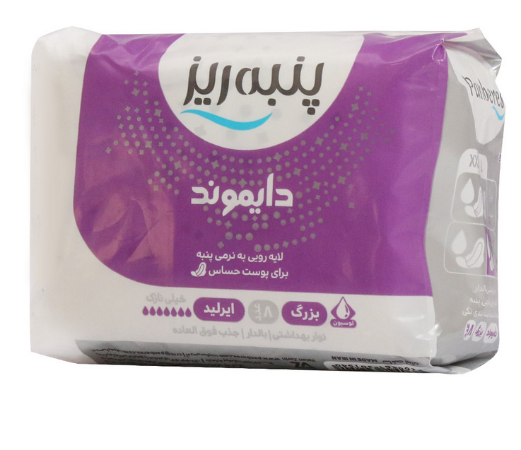 نوار بهداشتی بالدار پنبه ای خیلی نازک دایموند پنبه ریز