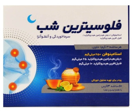 این محصول که به صورت پودر است دارای طعمی از عسل و لیمو بوده و دارای مقادیری همچون فنیل افرین هیدروکلراید و استامینوفن است. به منظور پیشگیری از بیماری هایی مثل: تب، سردرد و سرفه از ساشه فلوسیترین شب ابیان فارمد استفاده می شود. همچنین می توانید از فلوسیترین برای تسکین علائم سرماخوردگی و آنفولانزا استفاده کنید. البته مراقب باشید که تفاوت علائم سرماخوردگی و آلرژی را بدانید، از تشخیص اشتباه خودداری کنید و از داروی مناسب استفاده کنید.