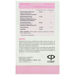 - حاوی گیاه خارمریم، کنگر فرنگی، زردچوبه، اسید آمینه متیونین و ماده معدنی کولین فاقد گلوتن