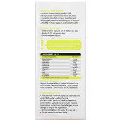 حاوی بتاکاروتن، ویتامین D3، ویتامین B1، ویتامین B3، ویتامین B6، بیوتن، اسکوربیک اسید، زینک اکساید، فروس گلوکونات، پتاسیم یداید، ال-کارنیتین، گلیسیرین، پروپیلن گلیکول، سدیم بنزوات، اسید سیتریک، ساکروز و ...