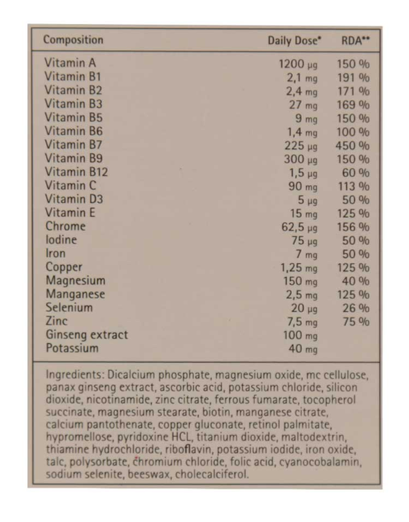 | Ginseng Extract | Ginseng Extract | 100 mg | ** |