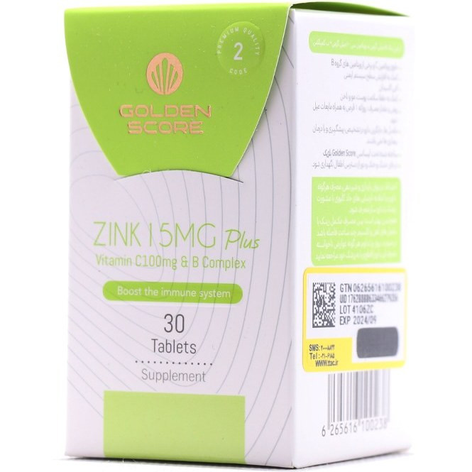 زینک 15 میلی گرم پلاس ویتامین سی گلدن اسکور 30 عددی