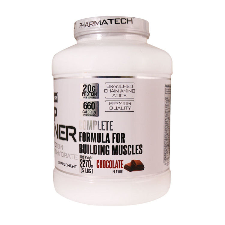 تاپ گینر فارماتک با داشتن ۲۰ گرم پروتئین و ۱۰۱ گرم کربوهیدرات یک مکمل مناسب برای ورزشکاران و وزنه بردارانی است که میخواهند سریع وزن بگیرند. این محصول به واسطه داشتن پروتئینهای سریع و آهسته هضم شونده و کربوهیدراتها به شما انرژی پایدار میدهد، زمانهای بهبود را تسریع میبخشد و اطمینان حاصل میکند که بدن شما دارای منبع پروتئین برای ساخت ماهیچههای شما است. در این مکمل غذایی از ویتامینها و مواد معدنی باکیفیت استفاده شده تا بتواند در حمایت از افزایش وزن و افرایش حجم و سرعت ریکاوری عضلات کمک کننده باشد. این فرآورده از کالری بالایی برخوردار است و همچنین میزان بالای پروتئین و کربوهیدرات موجود در آن به فرد انرژی پایدار میدهد که با استفاده از آن، دیگر نیازی به خرید گلوتامین و کراتین به صورت جداگانه نیست. این فرآورده بدون گلوتن و هیچگونه افزودنی است که از بروز عوارض احتمالی میکاهد.