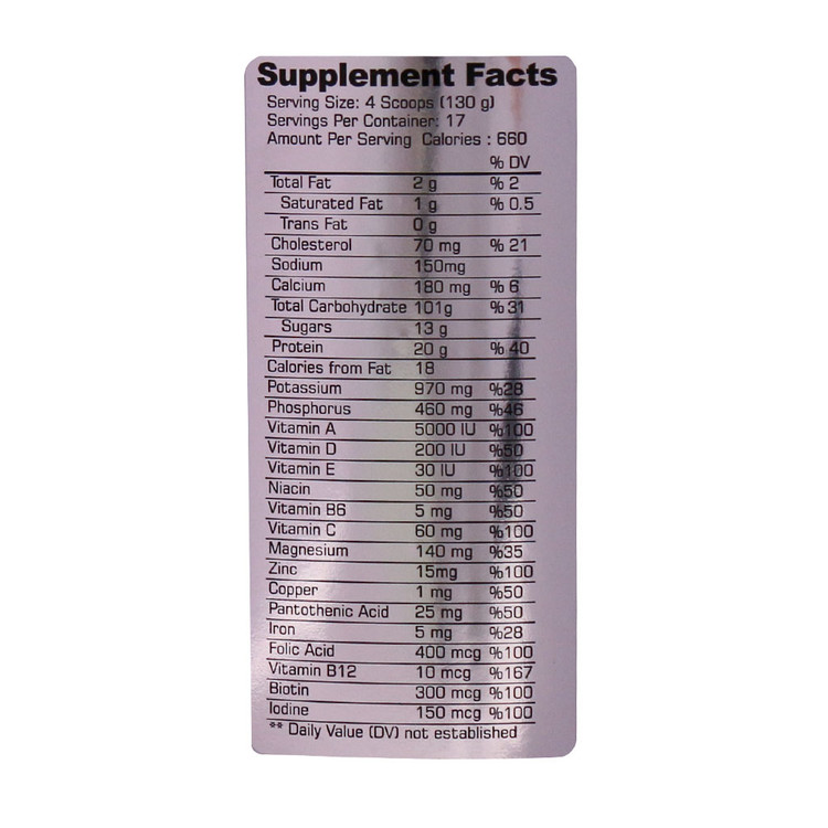 | ویتامین A | ۵۰۰۰IU | ۱۰۰% |