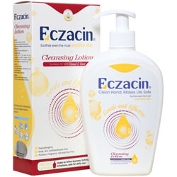 پوست دست و صورت کاملا خیس را با مقدار کافی از لوسیون شوینده ملایم اگزاسین به آرامی ماساژ دهید، سپس با آب ولرم آبکشی نمایید.