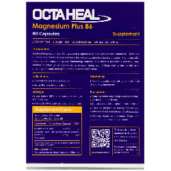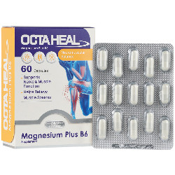 هر کپسول اکتاهیل منیزیم پلاس ب6 حاوی 350 میلی گرم منیزیم اکساید و 5 میلی گرم ویتامین ب می باشد.کپسول اکتاهیل منیزیم پلاس ب6 یک مکمل تغذیه ای حاوی مقادیر مجاز منیزیم و ویتامین ب6 بوده که به منظور تامین نیاز روزانه بدن و رفع کمبود این ریز مغذی ها استفاده می شود. منیزیم یکی از فراوانترین مواد معدنی در بدن است و نقش حیاتی در بهبود عملکردهای طبیعی بدن دارد، منیزیم به عنوان یک مینرال به سلامت سیستم عصبی و روانشناختی (یادگیری و حافظه)، مفاصل، استخوان و ماهیچه کمک می کند.این ماده همچنین با مشارکت در متابولیسم پروتئین، چربی و کربوهیدرات ها نقش بسزایی در تولید انرژی در بدن به خصوص برای ورزشکاران دارد.ويتامين ب6 از گروه ویتامین های ب و محلول در آب می باشد که در متابولیسم و تولید انرژی، بهبود عملکرد سیستم عصبی و روانشناختی و همچنین برخی از عملکردهای طبیعی بدن نقش حیاتی .دارد این ویتامین در بدن ساخته نمی شود و لازم است که نیاز روزانه به آن از طریق رژیم غذایی یا مکمل های تغذیه ای برطرف گردد.این فرآورده فاقد گلوتن بوده و در افراد مبتلا به سلیاک قابل استفاده می باشد.