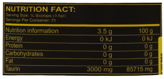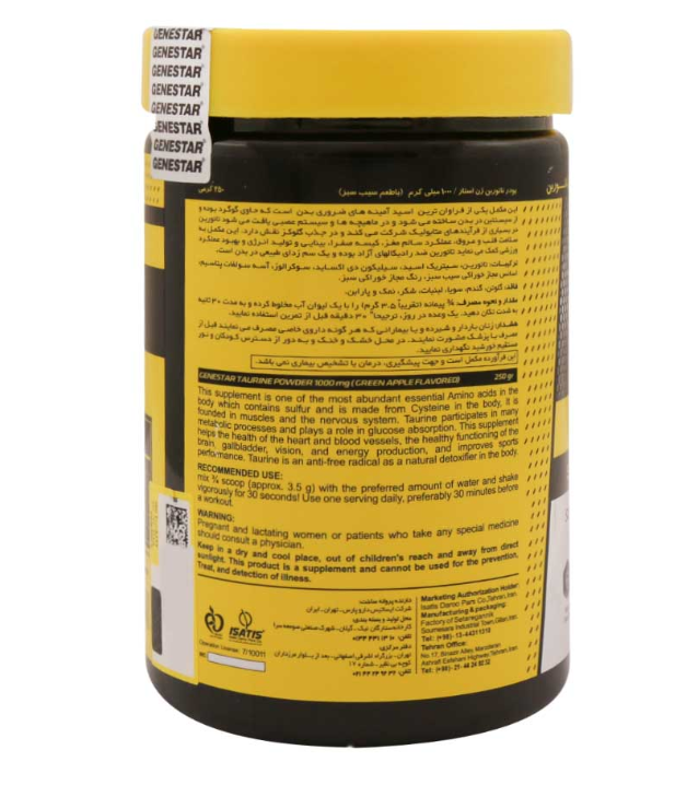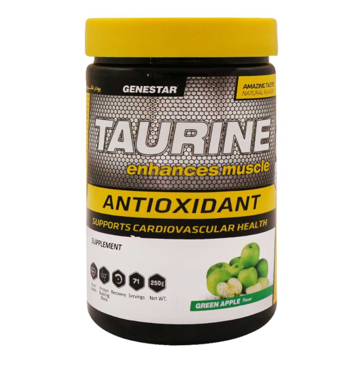 پودر تائورین ژن استار حاوی یکی از فراوانترین اسید آمینههای ضروری بدن است که دربردارنده گوگرد بوده و از سیستئین در بدن ساخته میشود و در ماهیچهها و سیستم عصبی یافت میشود. تائورین در بسیاری از فرآیندهای متابولیک شرکت میکند و در جذب گلوکز نقش دارد. این مکمل به سلامت قلب و عروق، عملکرد سالم مغز، کیسه صفرا، بینایی و تولید انرژی و بهبود عملکرد ورزشی کمک مینماید. همچنین ضد رادیکالهای آزاد بوده و یک سم زدای طبیعی در بدن است. تائورین پودری ژن استار ساخت ایران و به صورت پودر طعم دار در بسته بندیهای ۲۵۰ گرمی عرضه میشود. این نکته قابل توجه است که پودر تائورین ژن استار بدون کالری، چربی، شکر و گلوتن است.