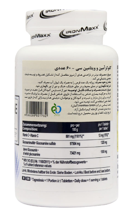 قرص گلوکوزامین و ویتامین سی آیرون مکس دارای مقادیر قابل توجهی گلوکزامین است که یک ترکیب طبیعی در بافت همبند انسان، مایعات مفصلی و غضروف به شمار میآید. این مکمل برای درمان آرتروز استفاده میشود و بیشترین تاثیر در بهبود درد و ساییدگی مفاصل زانو را دارد. قرص گلوکزامین و ویتامین C آیرون مکس تاثیر محافظتی بر روی غضروف دارد و به علت تاثیر مثبت در برابر بیماریهای التهابی، به شما کمک میکند که خستگی ناشی از تمرینات و افزایش فشار که معمولا توسط بدنسازان، دوندهها و ورزشکاران استقامتی تجربه میشود را رفع نمایید.