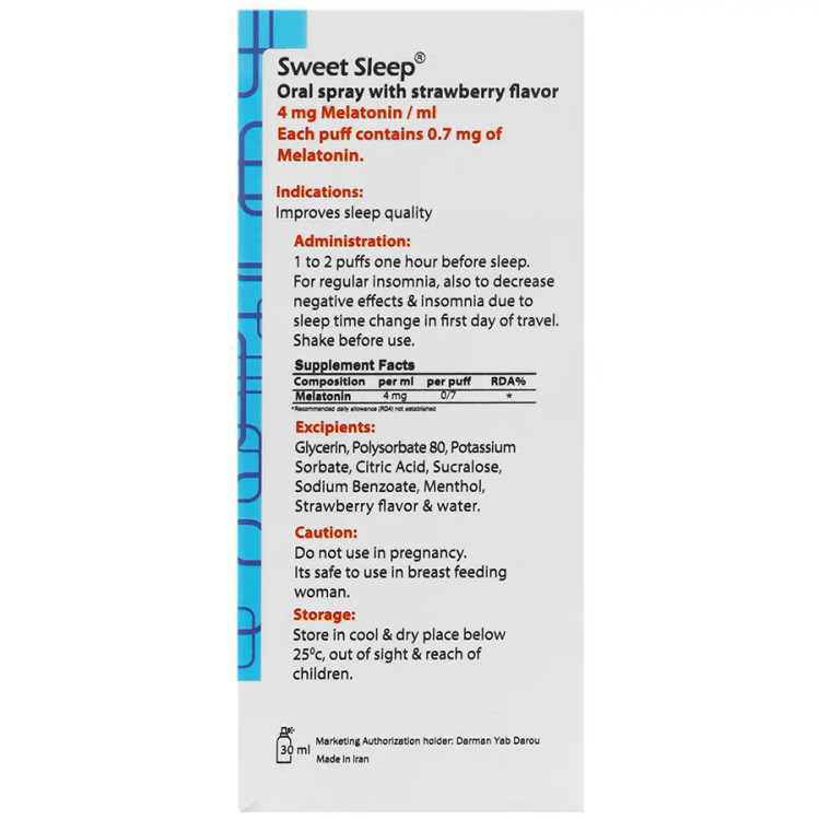 هر پاف اسپری حاوی 0.7 میلی گرم ملاتونین