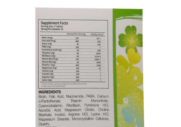 ترکیبات: ویتامین های گروه B، اسید آسکوربیک ، منیزیم سیترات ، کولین بی تارتارات ، اینوزیتول ، آرژنین هیدروکلراید ، لیزین هیدروکلراید