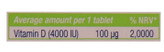 | ویتامین D۳ | ۱۰۰µg | ** |