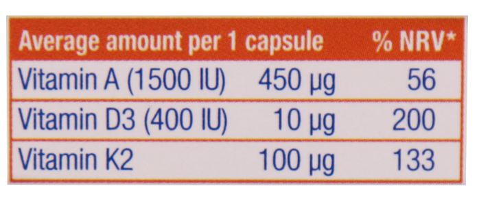 - حاوی ویتامین A، D۳ و K۲