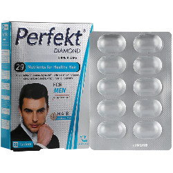 پرفکت دایموند آقایان:موی سر در سه مرحله رشد می کند؛ مرحله رشد، مرحله گذار و مرحله استراحت در هر مرحله مو به مواد مغذی برای رشد و درخشش و زیبایی نیاز دارد.ویتامین های گروه B از پوست سر محافظت کرده، آن را تغذیه می کند و رشد موی سالم را تقویت می کند.بیوتین به تقویت رشد موی سالم و کشسانی قشر مو کمک کرده و از خشکی مو جلوگیری می کند.نیکوتین آمید گردش خون پوست سر را تقویت می کند.اینوزیتول، بیوتین، پانتوتنیک اسید، مس، زینک و ید به کاهش ریزش مو کمک می کند.ویتامین A و C به عنوان یک آنتی اکسیدان عمل کرده و به تولید سبوم سالم در پوست سر کمک می کند.ویتامین D3 به جلوگیری از ریزش مو کمک می کند.ویتامین B12 برای ساخت گلبول های قرمز خون ضروری است و به انتقال اکسیژن به قشر سر و فولیکول ها کمک می کند.مس برای ماندگاری رنگ پوست، مو و چشم ها ضروری است.لیگنان ها و عصاره دانه انگور به حفاظت از رشد موی سالم کمک می کند.سلنیوم غنی شده با Lynside و زینک به تقویت ساختار مو کمک کرده و از ریزش مو جلوگیری می کند.این محصول تحت لیسانس Vitane Pharmaceuticals آمریکا، در شرکت داروسازی هگمتان داروی غرب ساخته شده و نماینده انحصاری و دارنده پروانه ساخت آن در ایران شرکت دارو درمان سپهر می باشد.