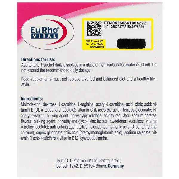 این مکمل تحت لیسانس شرکت Euro OTC Pharma GmbH کشور آلمان، دارنده پروانه ساخت شرکت حکیمان طب کار در ایران تولید و بسته بندی شده است.