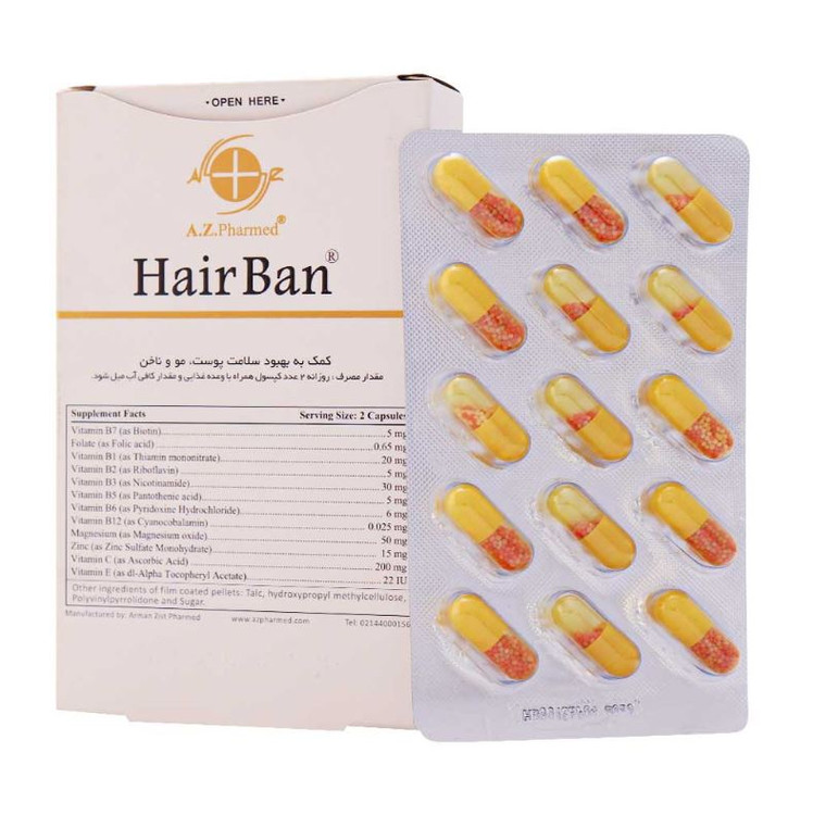 اگر به دنبال قرص تقویتی برای ریزش موی سر خود هستید، کپسول هیربان Hair Ban گزینه مناسبی برای شماست. این قرص در ترکیبات خود بیوتین، زینک، ویتامین سی و ای، ب کمپلکس و منیزیم دارد که در حال حاضر یکی از قرصهای پرطرفدار برای درمان ریزش مو با اثرگذاری بالا محسوب میشود. شما عزیزان میتوانید برای خرید کپسول هیربان آرمان زیست فارمد از همین صفحه اقدام کنید و در صورت تمایل برای مشاوره حضوری و آنلاین با ما در ارتباط باشید.