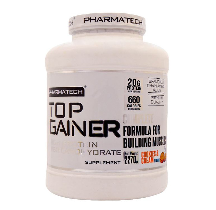 تاپ گینر فارماتک با داشتن ۲۰ گرم پروتئین و ۱۰۱ گرم کربوهیدرات یک مکمل مناسب برای ورزشکاران و وزنه بردارانی است که میخواهند سریع وزن بگیرند. این محصول به واسطه داشتن پروتئینهای سریع و آهسته هضم شونده و کربوهیدراتها به شما انرژی پایدار میدهد، زمانهای بهبود را تسریع میبخشد و اطمینان حاصل میکند که بدن شما دارای منبع پروتئین برای ساخت ماهیچههای شما است. در این مکمل غذایی از ویتامینها و مواد معدنی باکیفیت استفاده شده تا بتواند در حمایت از افزایش وزن و افرایش حجم و سرعت ریکاوری عضلات کمک کننده باشد. این فرآورده از کالری بالایی برخوردار است و همچنین میزان بالای پروتئین و کربوهیدرات موجود در آن به فرد انرژی پایدار میدهد که با استفاده از آن، دیگر نیازی به خرید گلوتامین و کراتین به صورت جداگانه نیست. این فرآورده بدون گلوتن و هیچگونه افزودنی است که از بروز عوارض احتمالی میکاهد.