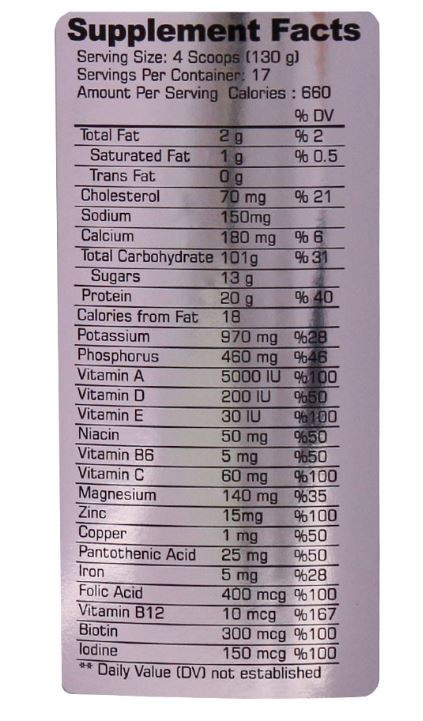| ویتامین A | ۵۰۰۰IU | ۱۰۰% |