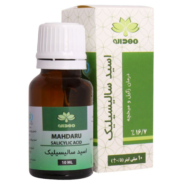 قطره زگیل و میخچه اسید سالیسیلیک مهدارو یک محلول حاوی ۱۶,۷ درصد اسید سالیسیلیک است که در درمان زگیل و میخچه و رفع قسمتهای شاخی پوست موثر بوده و دارای اثرات ضعیف ضدعفونی کننده نیز است. سالیسیلیک اسید یک اسید طبیعی است که برای درمان بسیاری از مشکلات پوستی چون آکنه، شوره سر، زگیل، میخچه و … مورد استقاده قرار میگیرد. این ماده اثرات ضد التهاب و ضد باکتری بر روی پوست داشته و مانع از مسدود شدن منافذ پوستی میشود. از آنجایی که عوارض جانبی این محصول بسیار ناچیز است، در ترکیبات محصولات آرایشی، بهداشتی و مراقبتی از آن استفاده میشود.