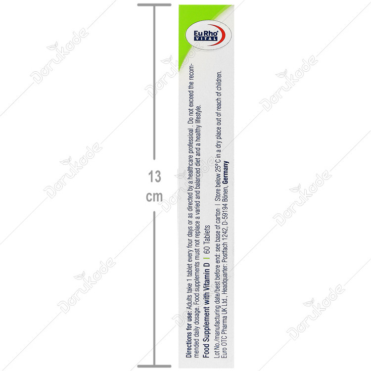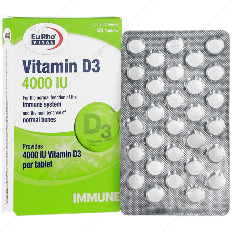 - ویتامین دی یوروویتال، حاوی 4000 واحد بین المللی ویتامین D به ازای هر قرص