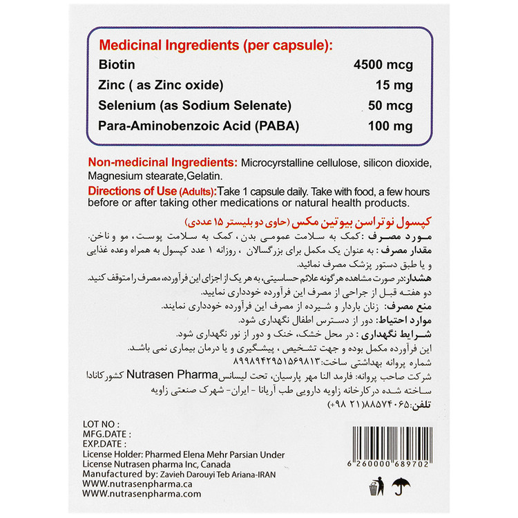 - بیوتین مکس، حاوی دوز مناسبی از بیوتین، زینک، سلنیم و PABA