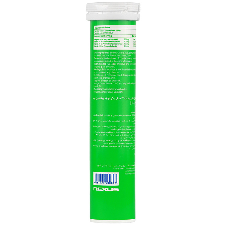 منیزیم و ویتامین ب1 و ب6 و ب12 نکستایل، مکمل تغذیهای به شکل قرص جوشان و حاوی منیزیم به فرم منیزیم اکساید