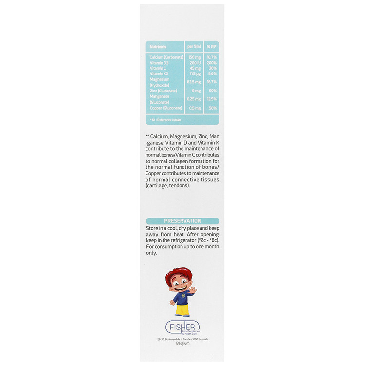 - حاوی کلسیم، منیزیم، ویتامین D3، ویتامین C، ویتامین K2، زینک، منگنز و مس